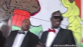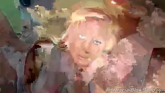 Порно видео В Сперме, Блондинка и негр - Блондинка с висячими сиськами оказалась в компании негритосов и сразу же пошла по рукам во время вечеринки, телку обкончали со всех сторон черные члены