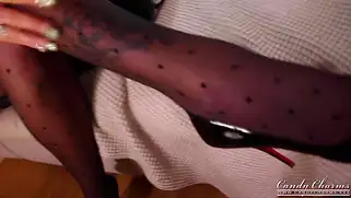 Зрелая блонди в чулках развалила ляжки и сиськи перед дрочкой