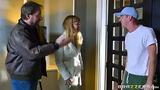 Красавицу девушку курьера поставил раком для траха и письку спермой наполнил