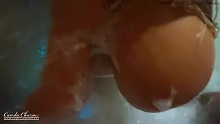 Блондинка с супер бюстом залезла в ванну чтобы пососать хуй