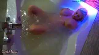 Порно видео В Ванной, Супер сиськи - Зрелая блондинка с супер бюстом уселась в пенную ванну и стала гладить сиськи ладонями, к телке подошел мужик с камерой и красотка сделала минет от первого лица
