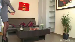Шлюшка в чулках попробовала резиновый член и настоящий от парня