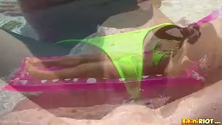 Жопастая наездница скачет резво на члене здоровом в секси бикини у бассейна
