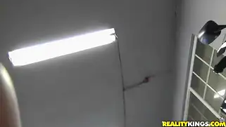 Очаровательная куколка в чулочках классно сосет хуй в туалете и стонет от траха