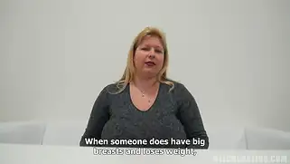 Толстушка с огромными буферами мастурбирует писю на кастинге
