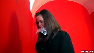 За углом большого здания худенькая шлюшка сосет хуй и ебется