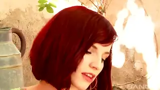 Среди красивых роз в роскошном саду деваха отсасывает хуй, получая оргазм