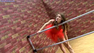Порно видео Мастурбация, Дрочит и кончает - Молодая русская балерина позирует в коротком красном платье, а потом ловкие ноги сучки принимаются дрочить член самца, руки помогают ногам и мужик кончает