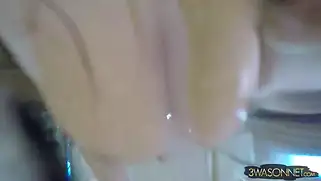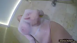 Порно видео В Ванной, С сиськами - Сочная баба с большими сиськами пошла под душ и стала ласкать груди ладонями, сучка установила камеру на верх душевой кабину и сняла на видео свое омовение