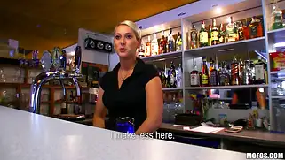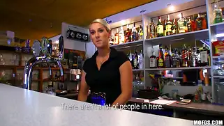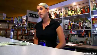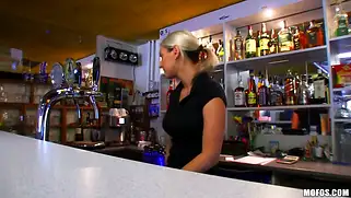 Пикапер подкатил к девушке бармену и трахнул грудастую блондинку