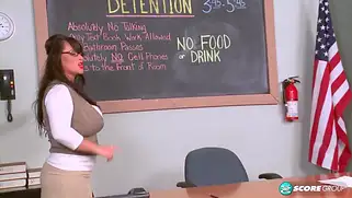 Преподавательница с большими батонами трахается с завхозом