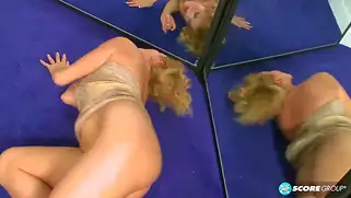 Порно видео Мастурбация, Перед камерой - Кудрявая толстушка лижет свое отражение в зеркале и начинает дрочить киску при помощи самотыка, вываливает сиськи наружу и кончает перед камерой и зрителями