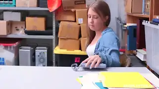 Порно видео Минет, Отсасывает член - Охранник в магазине окучивает молодую толстушку, сначала телочка отсасывает член мужика в рубахе, а потом укладывается на стол и подставляет пизду ебарю