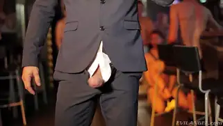 Порно видео БДСМ / BDSM, Длинный член - Мужик приходит в своей подвал, где будет висеть голая девушка на цепях. Она занимается с ним сексом и получает длинный член в ротик и в свою влажную дырочку между ног.