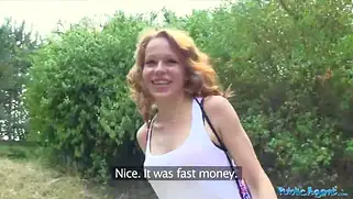 Порно видео В Сперме, С сиськами - Рыжая девушка с небольшими натуральными сиськами пришла в сад и встретилась с пикапером, мужик дал девушке сделать минет и трахнул под деревьями, кончив на лицо