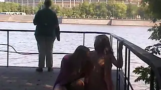 Порно видео На свежем воздухе, Русские сучки - Молодые русские сучки публично мастурбируют на набережной, девушки оголяются и используют самотыки для дрочки кисок, трогают груди, целуются и обнимаются