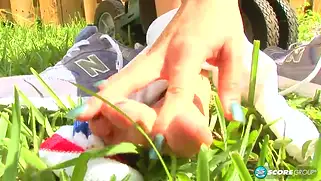 Среди красивых роз в роскошном саду деваха отсасывает хуй, получая оргазм