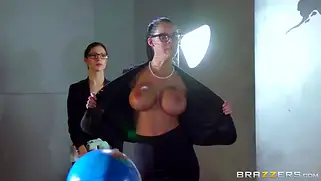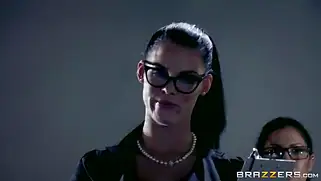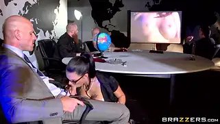 Johnny Sins - Сексуальная преподавательница института в массивных очках получает куни от лысого озабоченного ректора и ебется с мужиком на столе до финального камшота