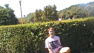 Рыжая москвичка вышла из кустов и дрочит киску на фоне универа