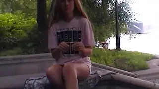 Рыжая русская Марина ходит по городу с голой жопой и дрочит киску