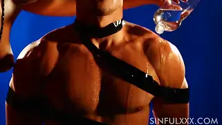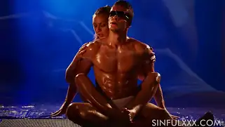 Голая баба с парнем измазались маслом и начали страстно ебаться