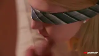 Ебал красавицу с завязанными глазами, а потом начал трахать открыто