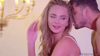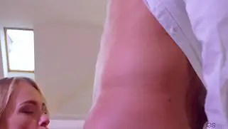 Голубоглазая блондинка с отличной задницей классно прыгает писькой на члене