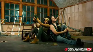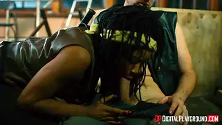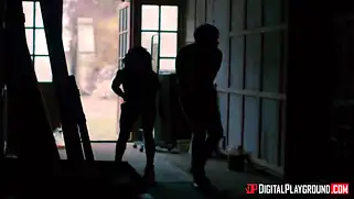 Порно видео Межрассовое, Сосет член - Дерел Диксон и Мишон из популярного сериала Ходячие Мертвецы будут заниматься сексом в сарае. Это порно пародия, где белый парень трахает негритянку с афро косичками.