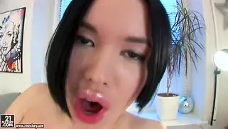 Милашка худенькая любит ощущать гигантский член внутри мокрой розовой писи