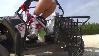 Во время ралли Париж-Дакар телку гонщицу ебут в пизду и жопу