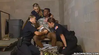 Две бабы полицейские начали сосать член худому негру и ебаться