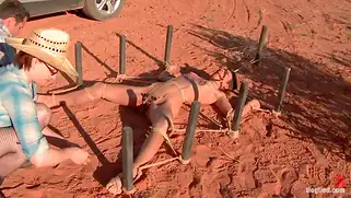 - Крутые парни на машине вывезли худую телку в мексиканскую пустыню, связали гибкую сучку и трахнули связанную блядь на земле, обвешивая шлюшку прищепками