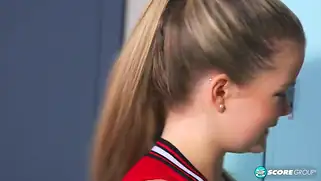 Молодая спортсменка легла на лавку в раздевалке и дрочила писю