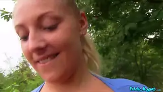 Порно видео В Сперме, Минет за деньги - Телка в синей блузке пошла с мужиком в посадки чтобы делать парню минет и трахаться, парень поимел грудастую шлюшку за деньги и решил обкончать сиськи