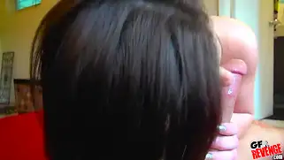 Брюнетку трахают от первого лица длинным членом в киску и рот