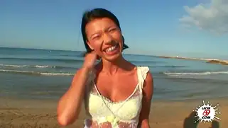 Быстрый пляжный секс похабной парочки заснят на любительское порно видео