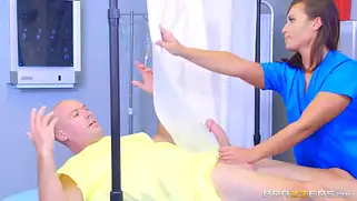Mike Angelo - Молодая девушка так давно не трахалась и не сосала мужской член, что начала трогать пациента между ног и сосать хуй прямо в палате у него. Она делает минет на работе.