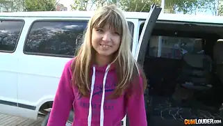 Хрупкая русская блондинка сосет хуй в машине и трахается