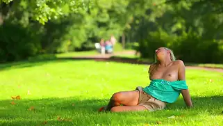 Порно видео На свежем воздухе, Голая русская девушка - Молодая русская девушка на улице стянула голубой сарафан под которым не было белья, голая рыжеволосая сучка уселась на зеленую траву и позировала обнаженной