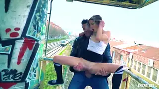 Пока ждали поезда захотели трахаться в публичном месте и сосать