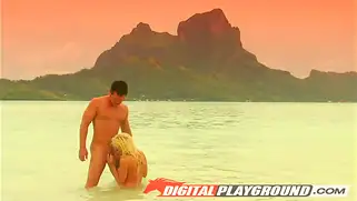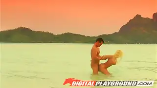 Мужик завел блондинку на мелководье и трахнул на одной ноге
