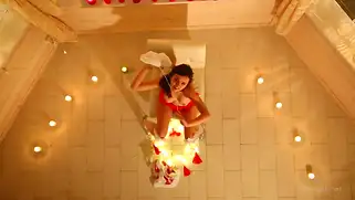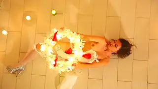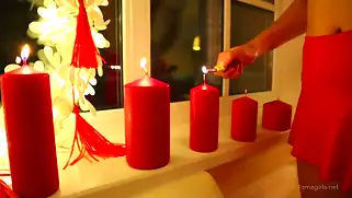 Русская сучка сняла костюм снегурочки и дрочила при свечах
