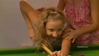 Молодые русские блондинки занимаются сексом на бильярдном столе