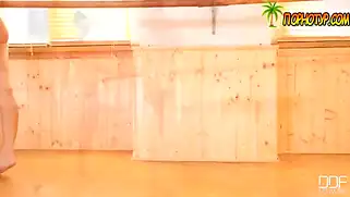 После разминки балерина дрочит киску, кайфуя напротив зеркала