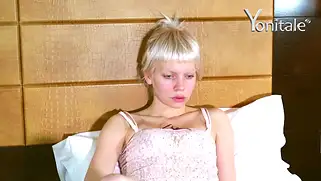 Блондинка с короткой стрижкой разложилась в постели и кончила
