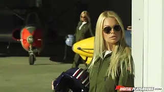 Девушки из летного училища устроили оргию с летчиком в ангаре