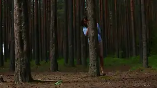Молодая русская телочка гуляет по лесу и дрочит вибратором