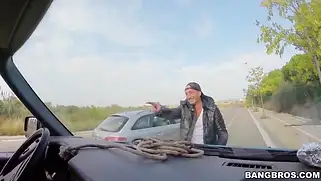 Бабу посадили в машину и она там начала сосать член и ебаться