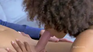 Черная телочка с кудряшками будет трахаться с белым парнем в писю