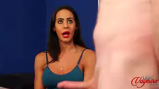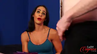 Мужик дрочит член на глазах бабы и кончает много спермы потом